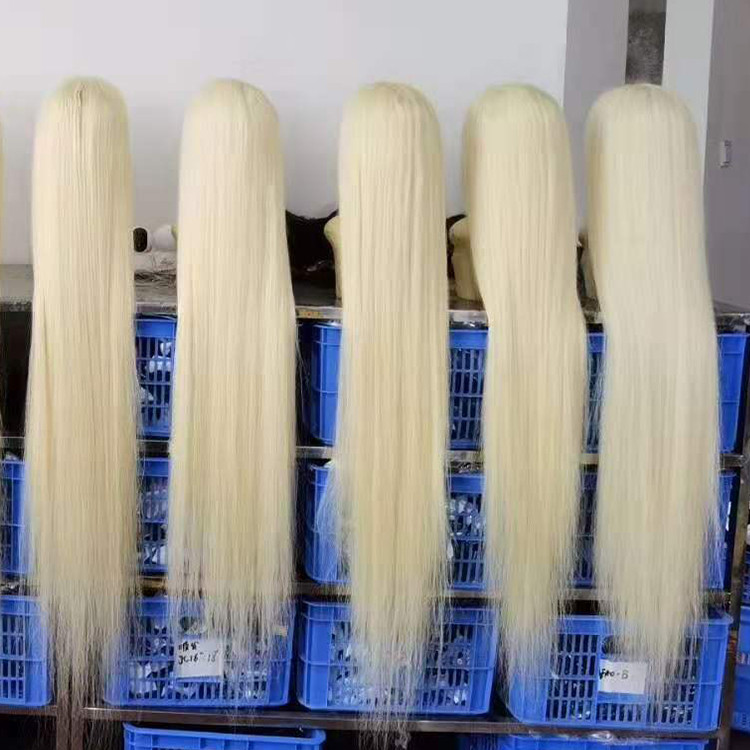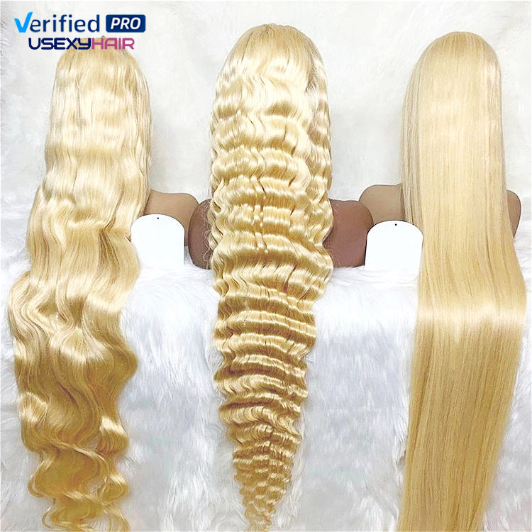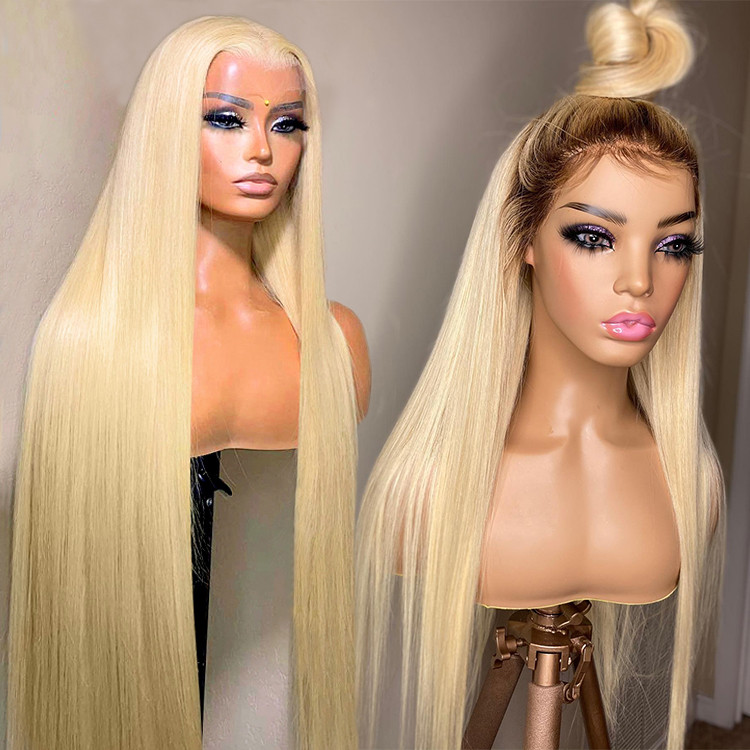 Peluca Rubia de 40 pulgadas cabello humano crudo HD frente de encaje para mujeres negras 613 Peluca de cabello virgen vendedor al por mayor Peluca de encaje recto de hueso