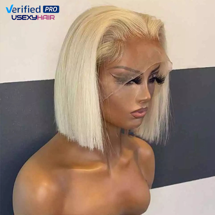 12a Camboya corto recto Bob peluca pelucas de cabello humano Blonde 613 color frente de encaje 13x4 Frontal de encaje mejor proveedor de peluca para mujeres